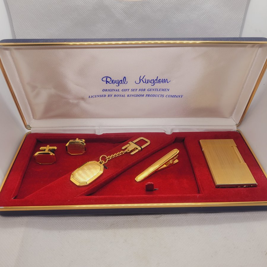 SET bật lửa , kẹp cà vạt, măng sét móc treo khóa full hộp new, mạ vàng 18k gp