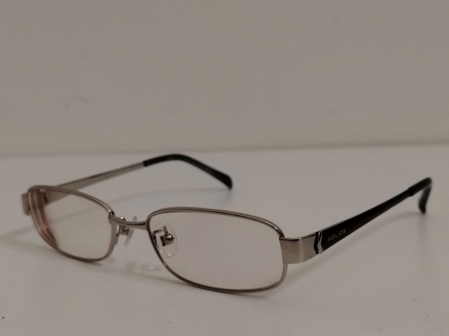 (TT) Gọng kính titanium màu bạch kim Police (V8707J Col.579X).
