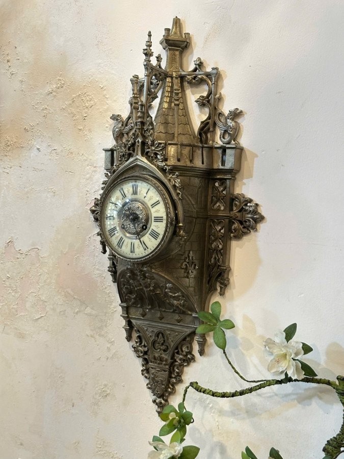Phù điêu đồng hồ treo tường kiến trúc Gothic Revival Pháp. Tk 19 nhập khẩu nguyên zin
