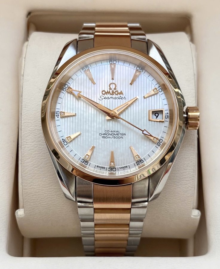 OMEGA Seamaster Aqua Terra 8500 MOP (khảm trai) trắng Diamonds Index