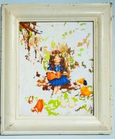 Tranh sơn dấu cô gái đánh đán