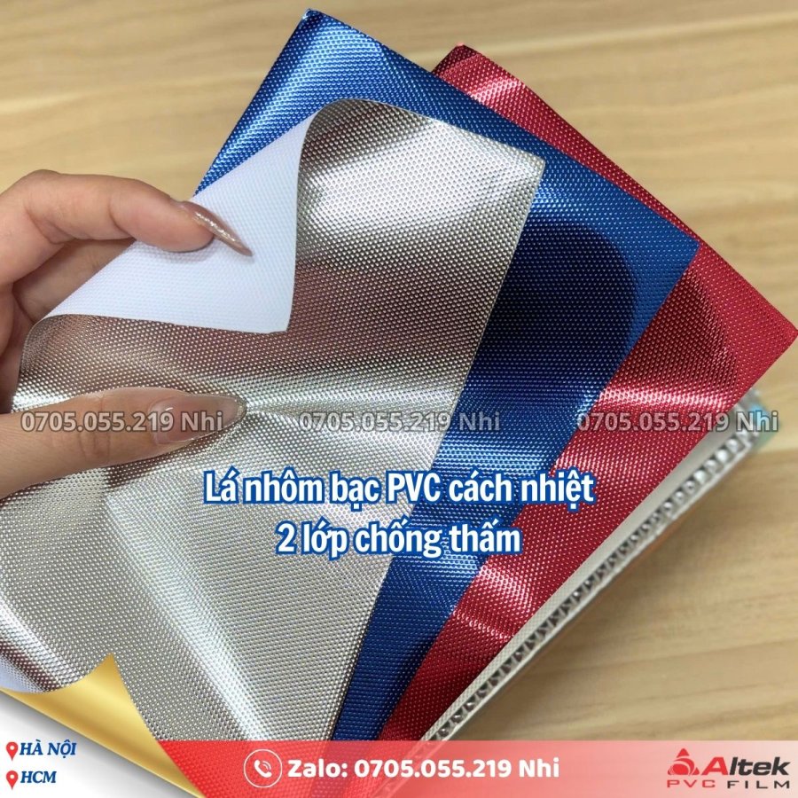 Lá nhôm bạc PVC cách nhiệt dập nổi 2 lớp