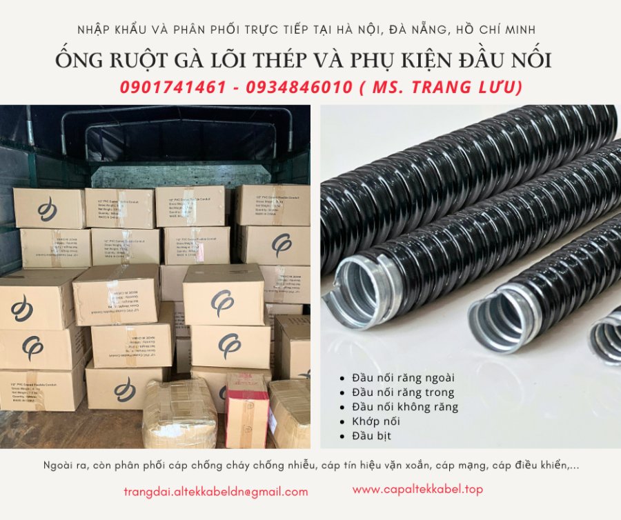 Ống ruột gà lõi thép bọc nhựa ½ (Phi 20) Hà Nội, Đà Nẵng, HCM