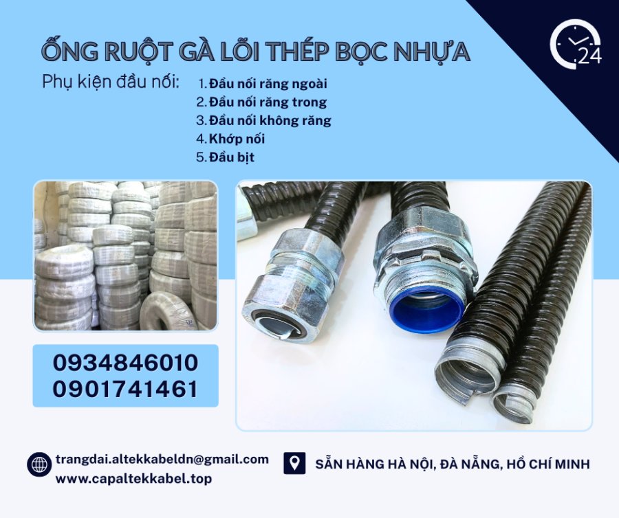 Ống ruột gà lõi thép bọc nhựa 3/4 (Phi 25) sẵn Hà Nội, Đà Nẵng, HCM