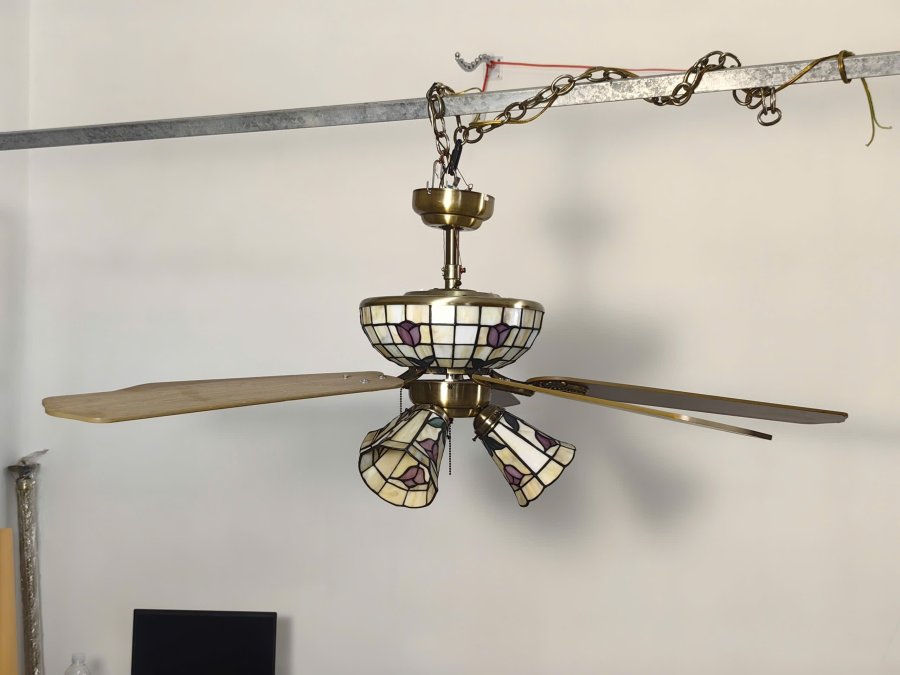 Chiếc quạt trần kết hợp đèn chùm treo kiểu Tiffany phong cách cổ điển