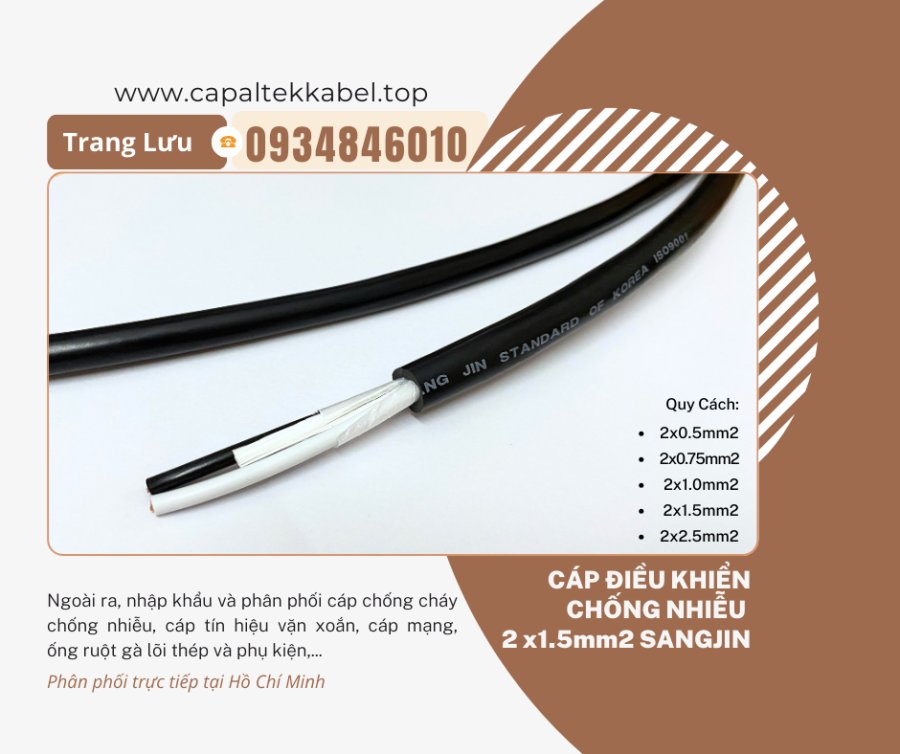 Cáp điều khiển Sangjin 2x1.5 Hồ Chí Minh, Bình Dương, Đồng Nai