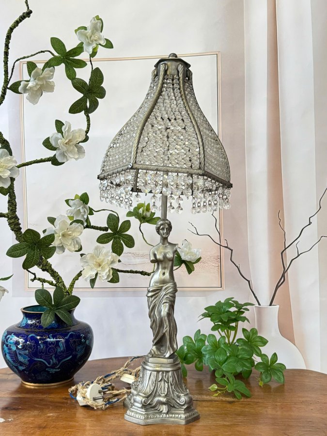 Chân Đèn Tượng Đồng Thiếu Nữ Lắc Kê Bạc
