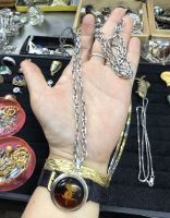 Giao lưu sợi dây bạc ngoại 925, mặt hổ phách chạm hoa bồ ********h siêu đẹp