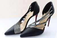 Giày cao gót Nữ : Louboutin Paris Da đen đính đinh cường chiếu (Full túi ) 56071