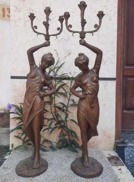 Đôi cô gái cầm nến đồng cao 99cm đẹp xuất sắc