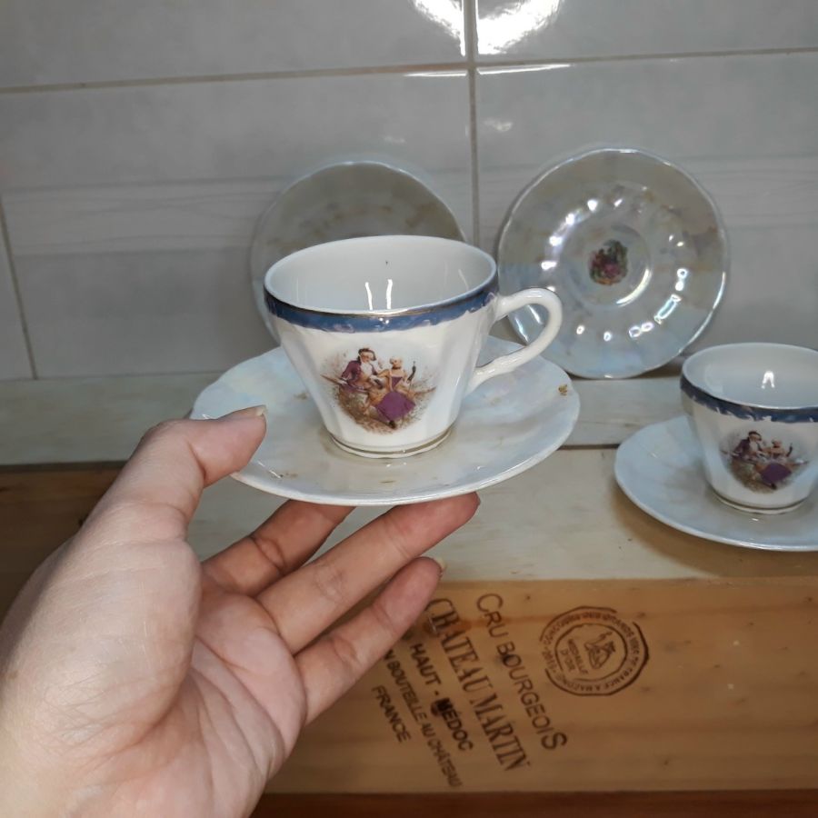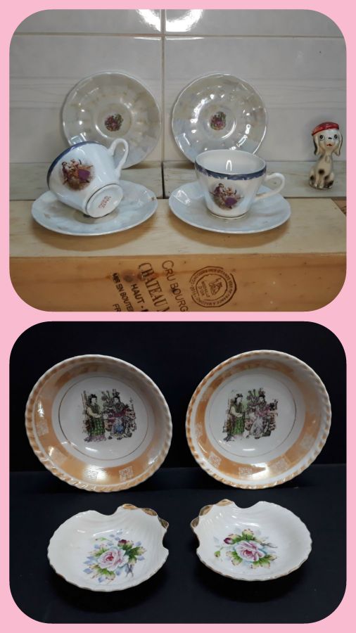 Sứ Nhật xưa 470k bao ship - 2 dĩa sò nhỏ - 2 tô, có 1 tô đáy rạn hình chân chim, còn lại lành đẹp - 2 set tách - 2 dĩa lót lẻ