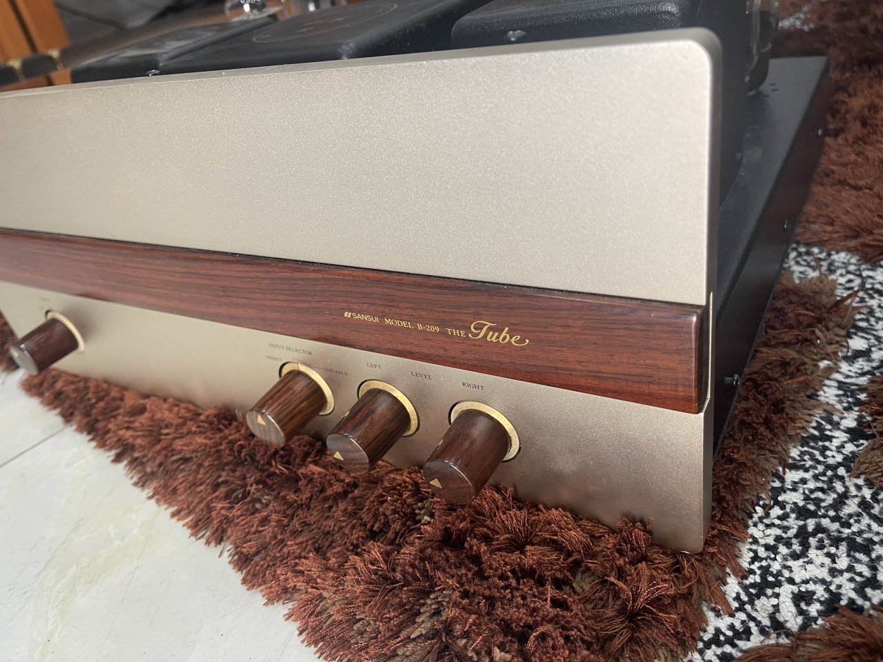 Em xin phép lên sóng siêu phẩm huyền thoại sunsui b209, hàng sx giới hạn 200 chiếc trên toàn thế giới. Máy đẹp nghiêm chỉnh, diện 100v nhưng có thể chuyển 230v (theo clib tây lông huớng dẫn- em chưa làm theo). Cấu hình gồm 2 bóng 5u4g, 2 6sl7, 2 6sn7, 4 bóng 6l6/kt66/el34. Cs 30w class A. Dải tần rộng, khiển dc loa lớn