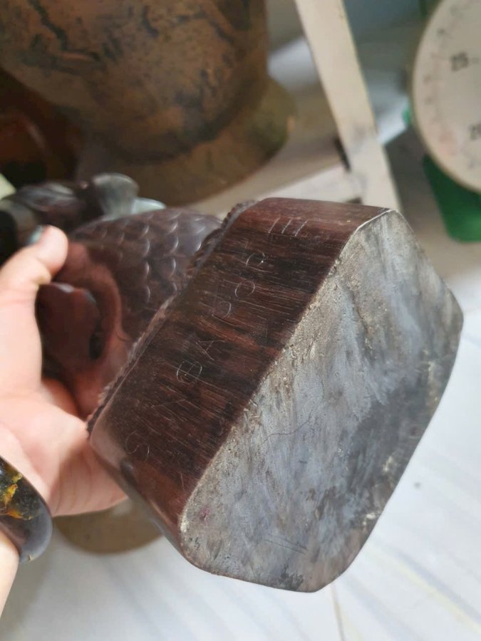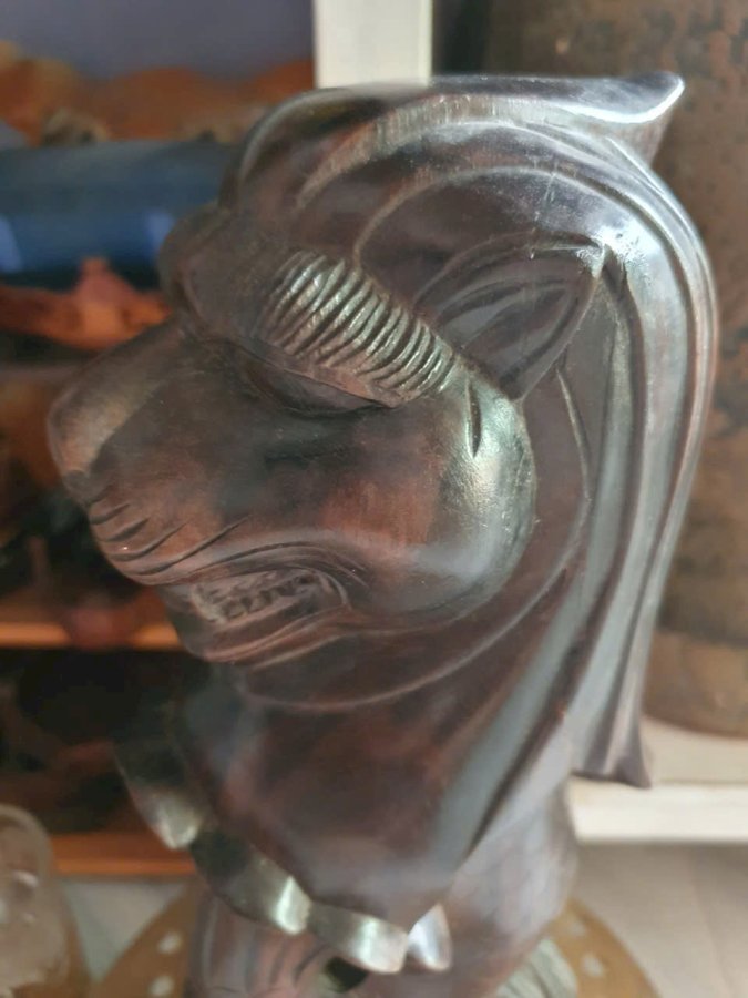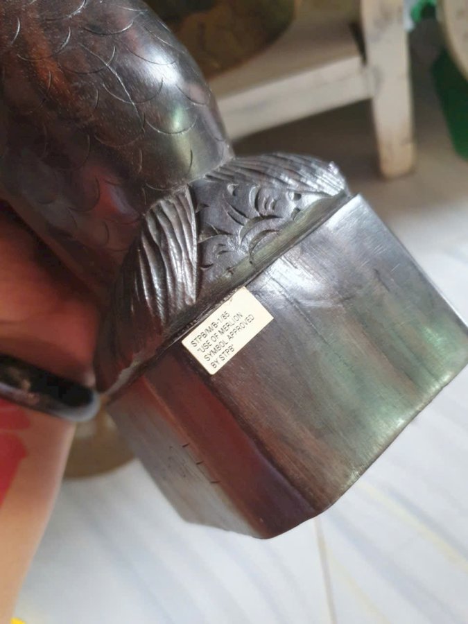 Sư tử biển biểu tượng Singapore bằng gỗ trắc.Nặng 2,1kg*cao 30,5cm*8,5cm*11cm.Còn tem