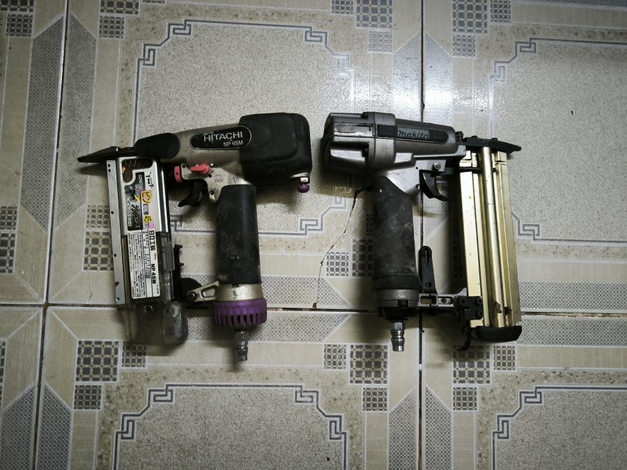 Nhà không làm nữa, dọn kho lòi ra 2 cây súng bắn đinh , một cây Hitachi, một cây Makita, còn khá mới , không có bình hơi để thử, ai quan tâm alo
