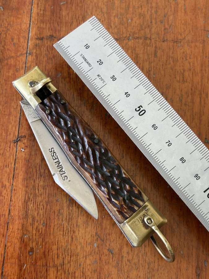 Bán 1 dụng cụ bấm cắt gọt Japan rất đẹp, chỉ tiếc sao lưỡi không xếp vào hết. Tất cả nguyên zin, thép không gỉ, đồng và sừng. Các a nghiên cứu thêm!