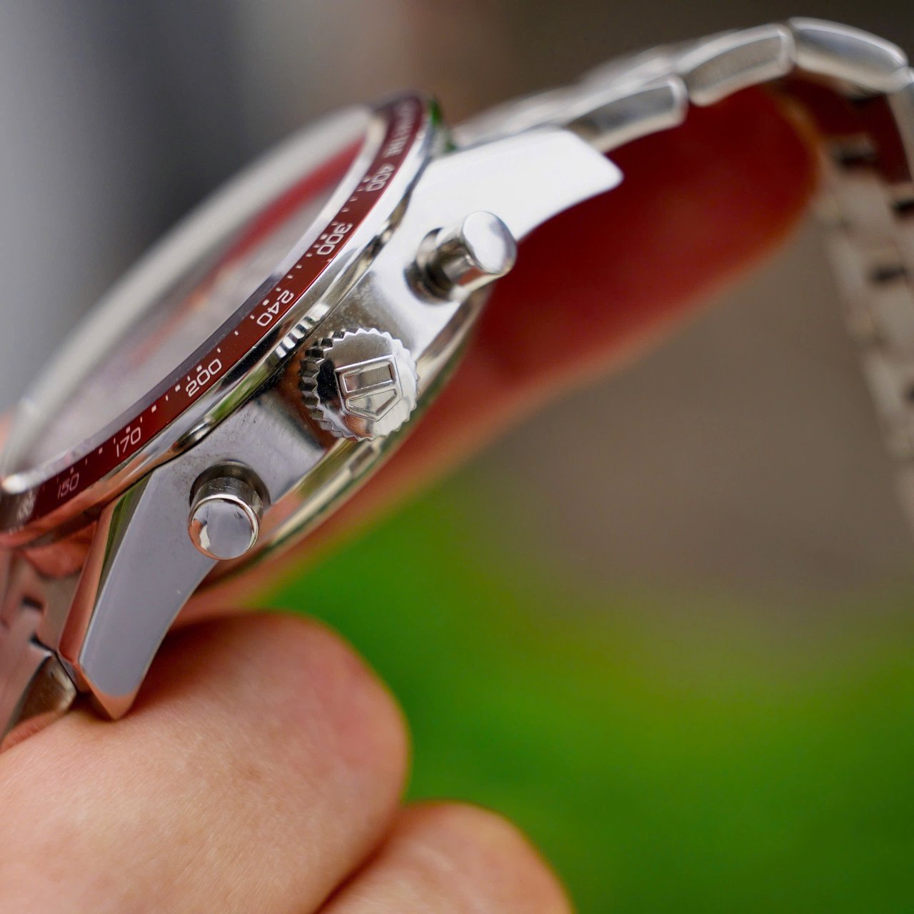 • Lịch ngày sắc nét, dễ nhìn, nút bấm chrono nảy, rất “đã tay”.