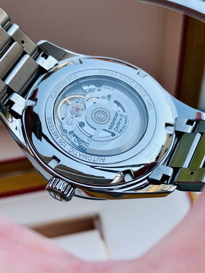 . Đồng hồ được trang bị bộ máy Automatic Tag Heuer Caliber 5 với thông số: 26 chân kính, 40h tích cót và 28.800vph