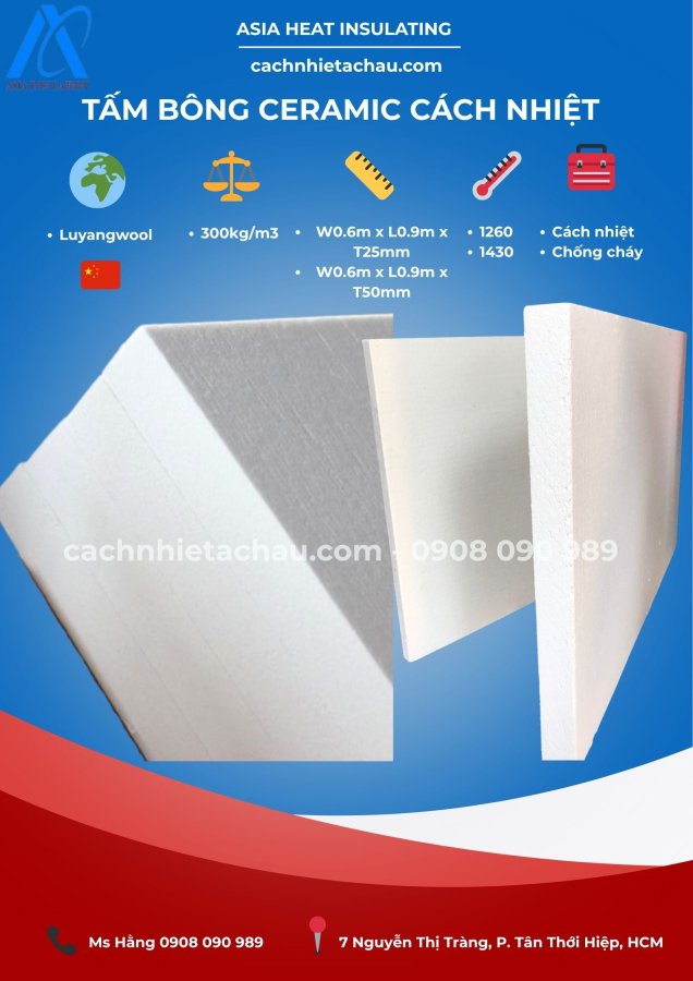 Sản phẩm còn được gọi là Ceramic Fiber Board, tấm bông gốm cách nhiệt, bông gốm chịu lửa dạng tấm. Đây là sản phẩm có đặc tính cách nhiệt, chống cháy chịu lửa cực tốt. Bông gốm được chứng mình có thể hoạt động tốt trong môi trường nhiệt độ cực cao, ngọn lửa trực tiếp lên đến 1260°C