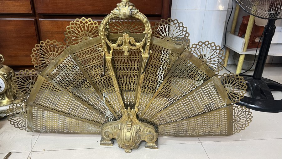 Tấm chắn lò sưởi bằng đồng đúc chuẩn cổ trên 100 năm,với các chi tiết được cắt và đúc rất tinh xảo.