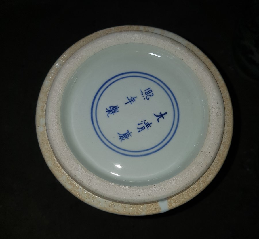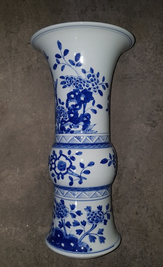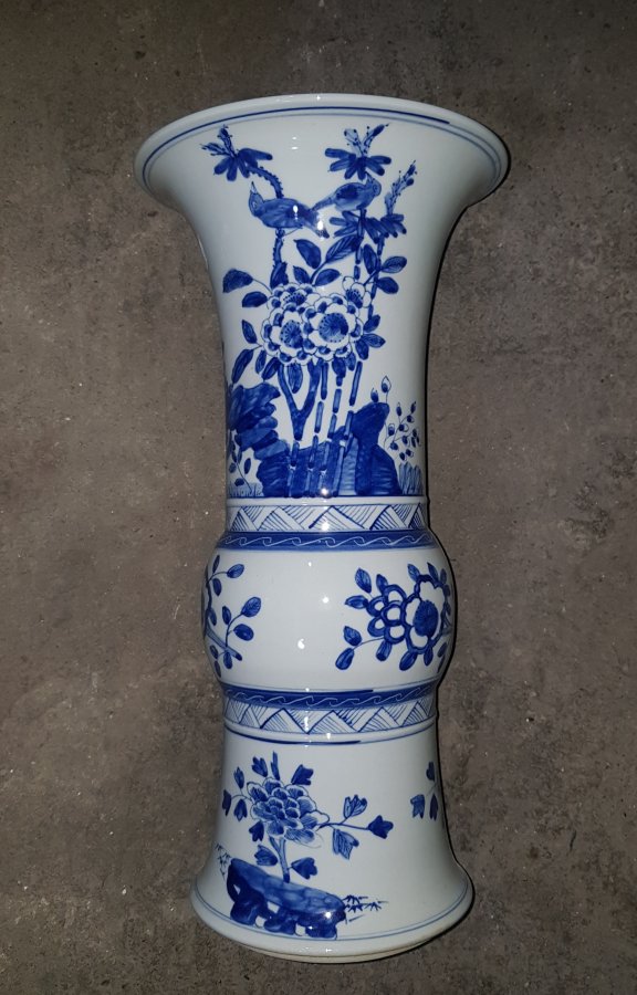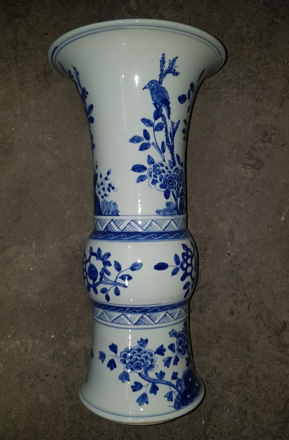 Bình chim hoa men lam dáng Tam Khẩu cao tổng thể 39cm. miệng 19cm. lành lặn. GL2850k