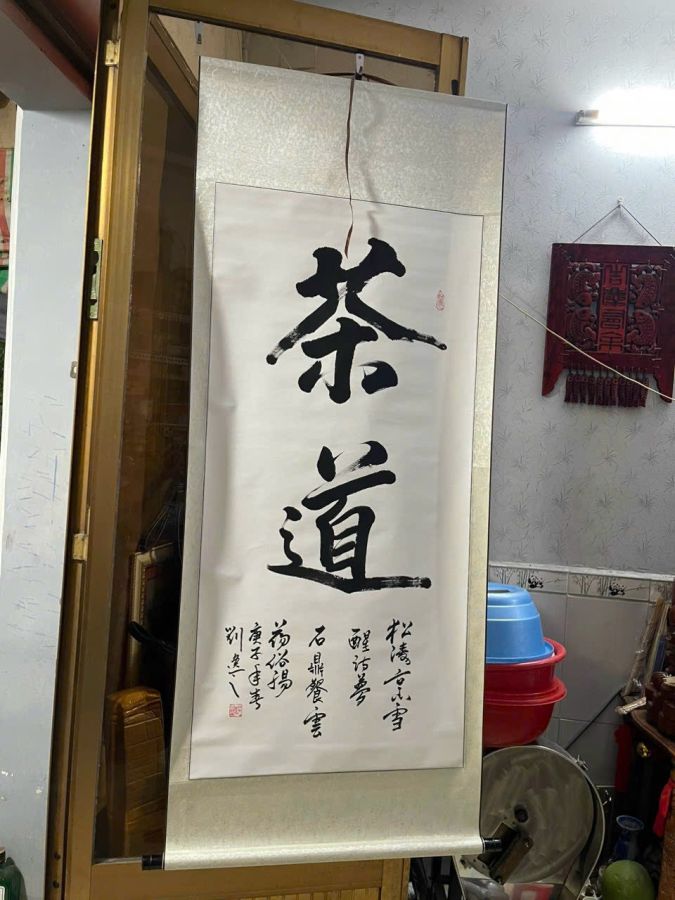 Tấm thư pháp trà đạo -茶道 :phong cách uống trà hướng đến giá trị tinh thần.