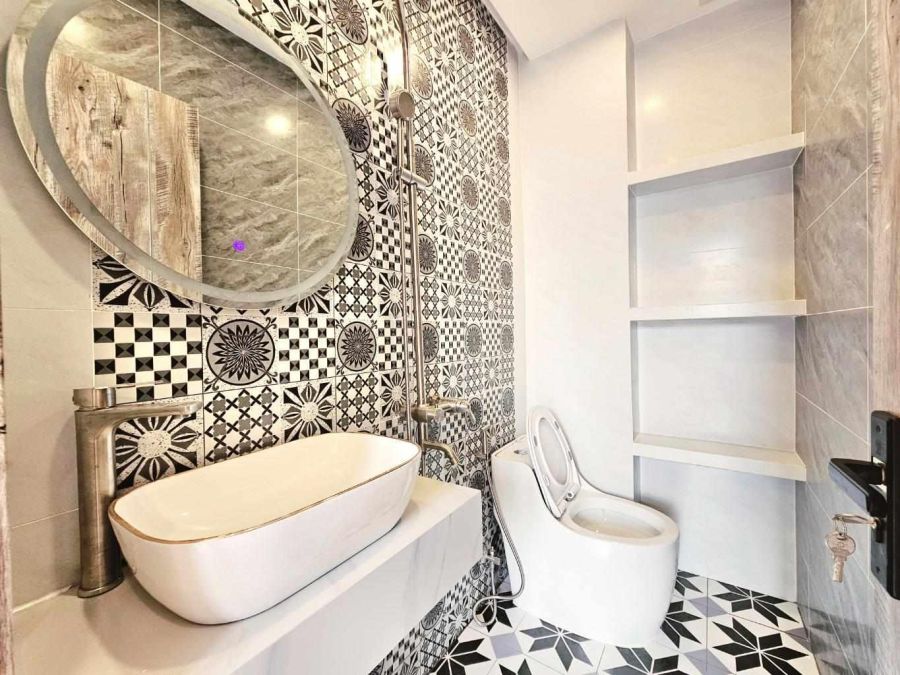 - Kết cấu 1 Trệt 2 lầu, gồm: 3PN, 4WC, phòng thờ, sân thượng, giếng trời cuối nhà các phòng và bếp đều thông thoáng.