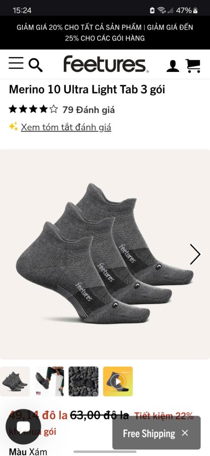 Tất Feetures thương hiệu Mỹ mùa 2026, tất chuyên dòng thể thao vận động mạnh, chất liệu Poly thoáng và khô nhanh với các loại hoạt động thể thao ngoài trời.