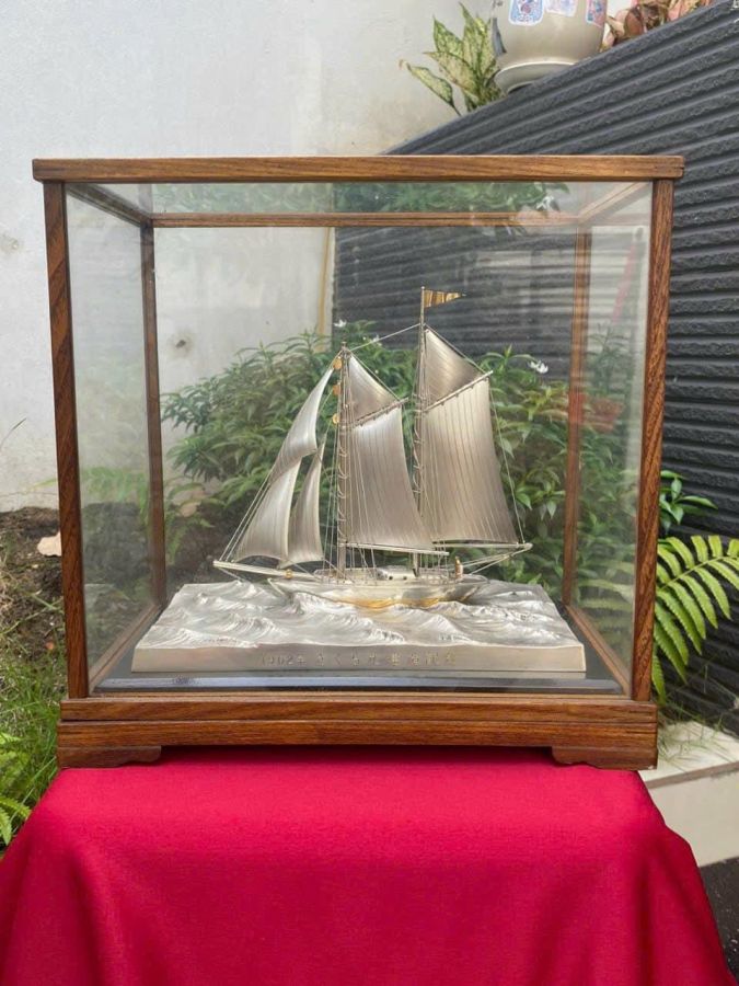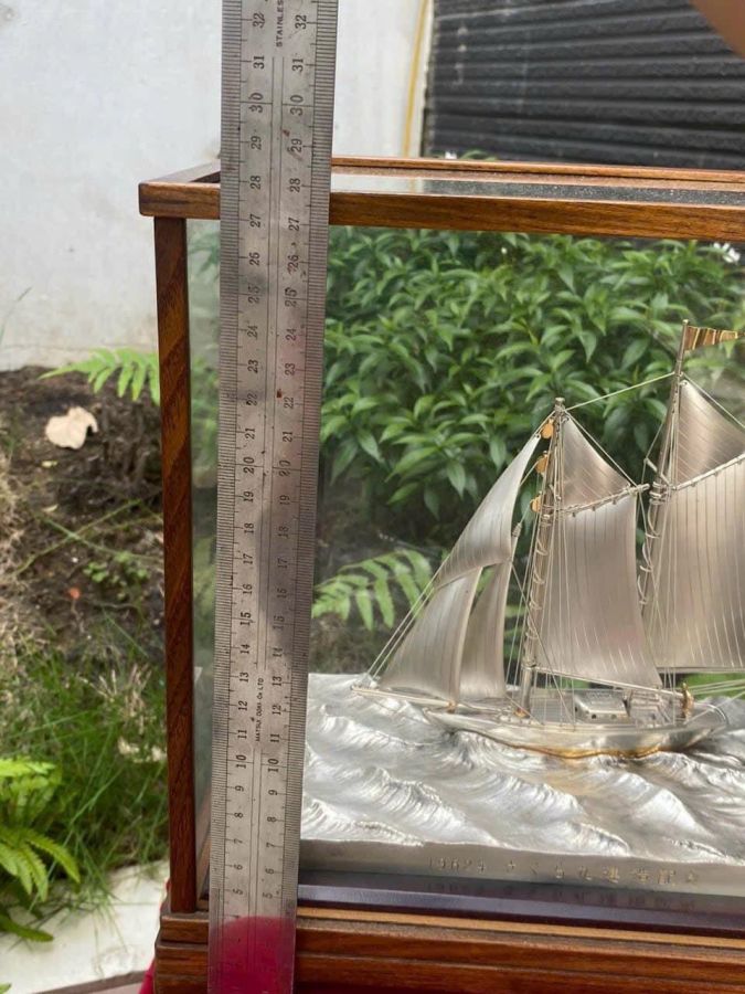 Thuyền bằng bạc khối 970 Phong thủy: thuận buồm xuôi gió Rất đẹp và sang trọng Trưng bày phòng khách, phòng làm việc, sảnh công ty hoặc làm quà tặng cực đẹp và sang trọng, ý nghĩa Kt: cao 28cm- ngang 28cm