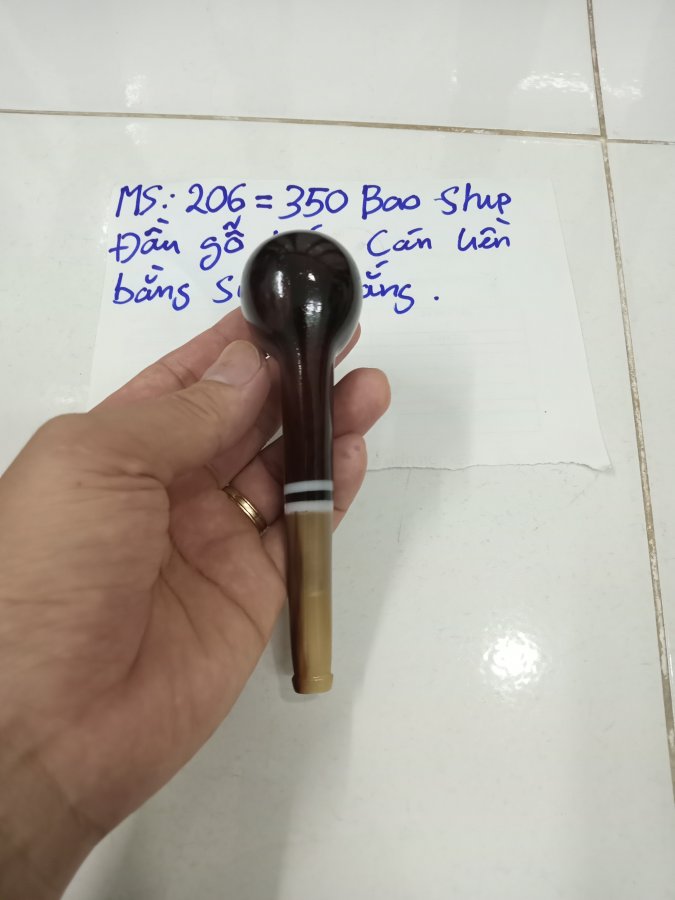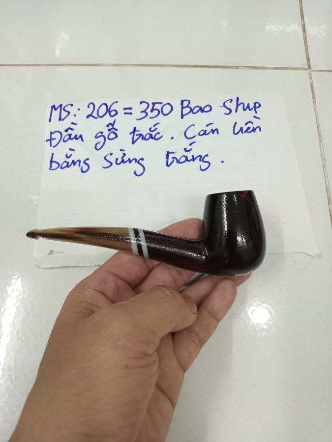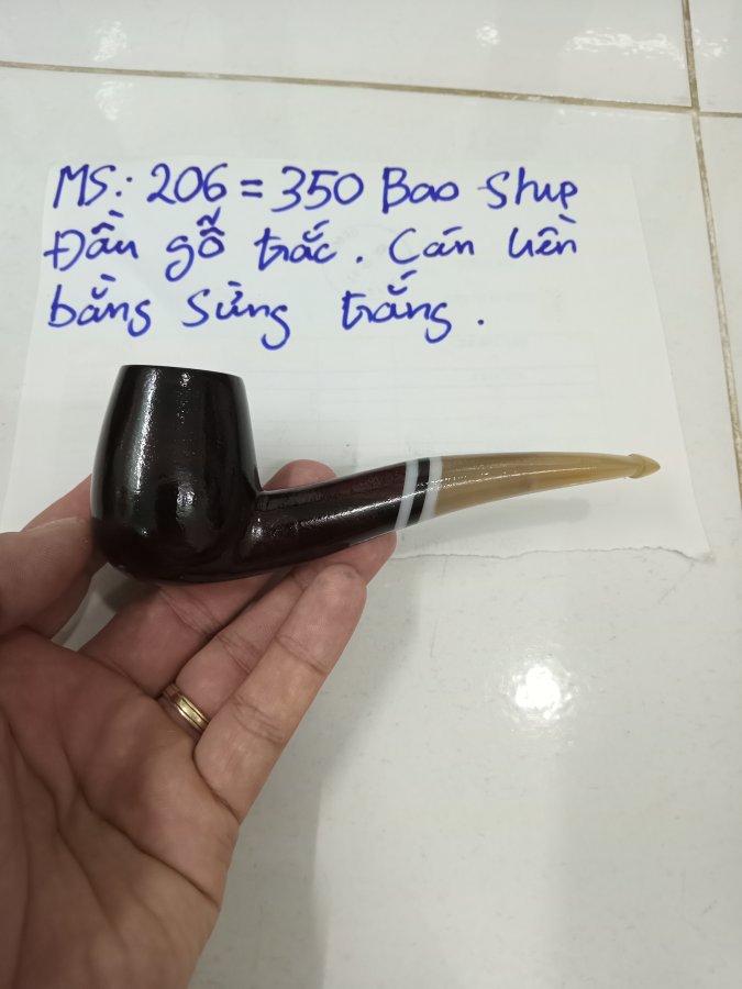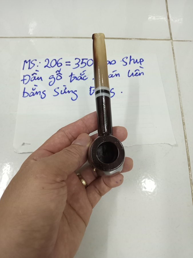 Tẩu hút sợi MS 206 . Đầu gỗ trắc , cán liền bằng sừng trắng . Đường kính lò 18 mm , sâu 35 mm . Giá 350k bao ship . Alo 0933 888 298 có zalo