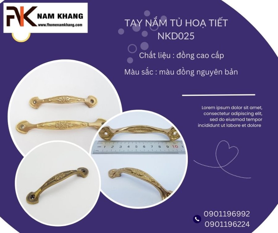 Tay Nắm Tủ Đồng NKD025 Họa Tiết Hoa Văn Tỉ Mỉ