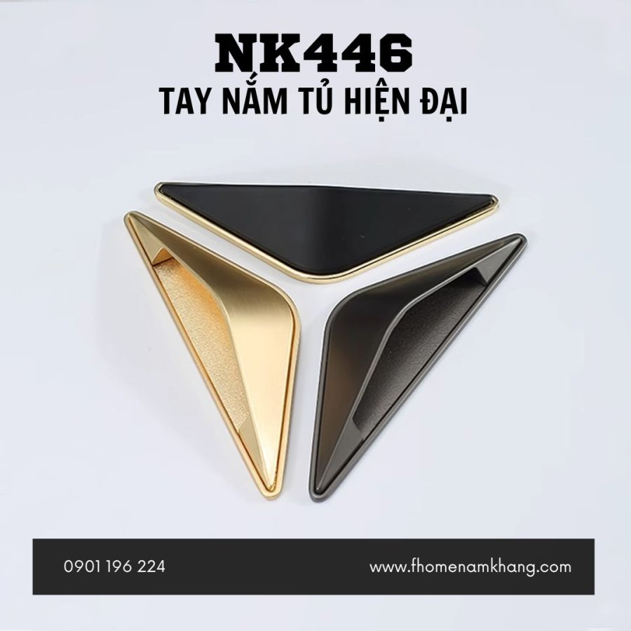 Tay nắm tủ hiện đại NK446 với thiết kế hình tam giác độc đáo, phá cách, mang đến điểm nhấn mới lạ cho không gian.