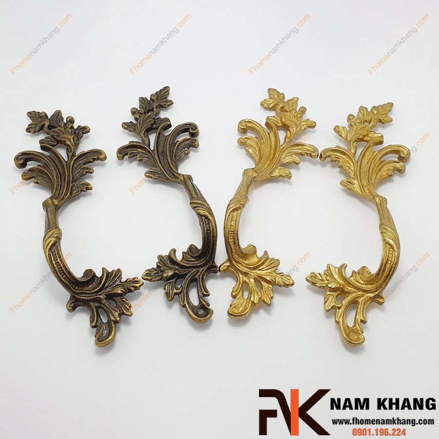 Tay nắm tủ NKD087 là điển hình của sự tinh xảo cùng họa tiết hoa văn uốn lượn cân đối và màu sắc đồng cổ, đồng vàng đặc trưng, chúng mang đến nét đẹp hoài niệm, cổ điển và sang trọng.