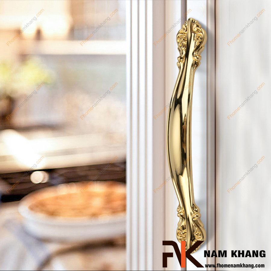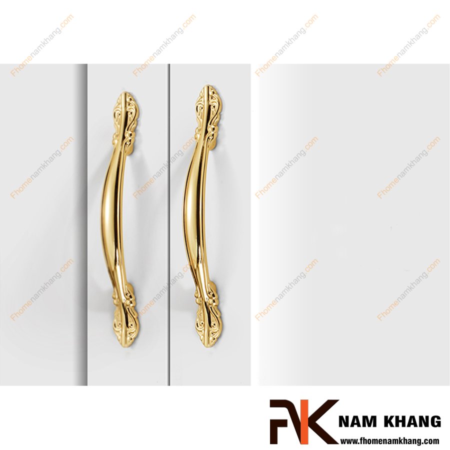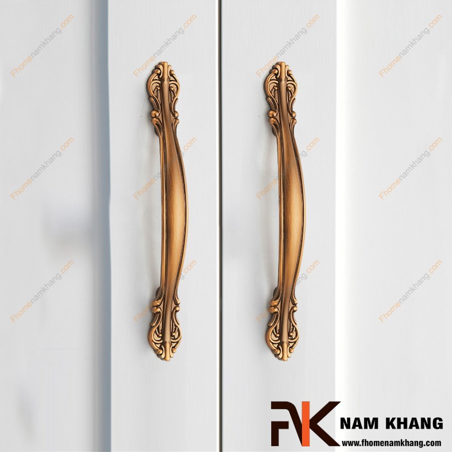 Tay nắm tủ NK034 gây ấn tượng mạnh với thiết kế mang đậm dấu ấn cổ điển, những đường cong mềm mại uyển chuyển kết hợp với các chi tiết hoa văn đối xứng tạo nên vẻ đẹp hài hòa và cân đối.