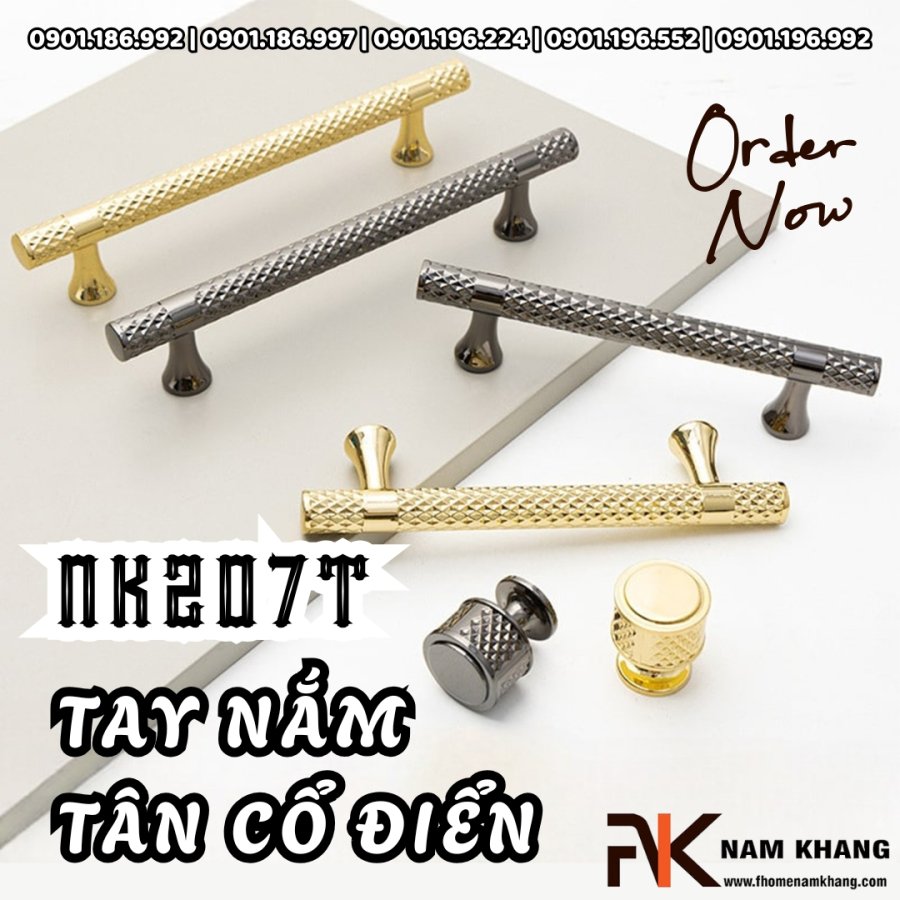 Tay nắm NK207T mang phong cách tân cổ điển độc đáo với thiết kế trụ tròn khắc hoa văn caro nổi bật tạo điểm nhấn sang trọng cho không gian nội thất.