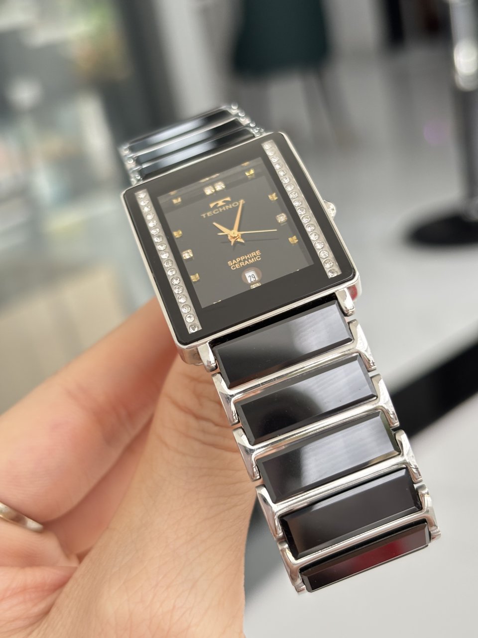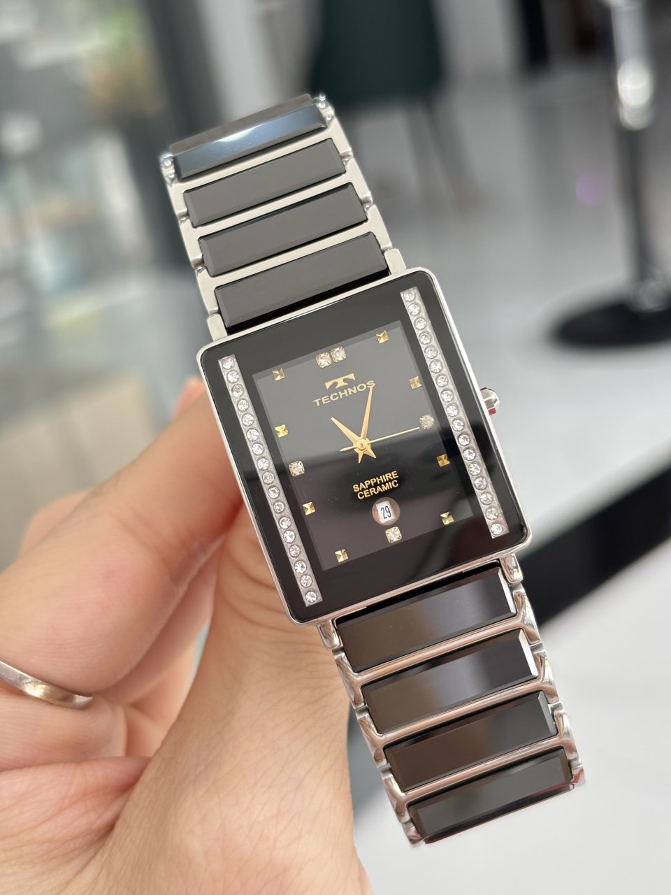 TECHNOS BRAZIL CERAMIC- Kính saphire tràn viền sang trọng- Niềng mặt được đính đá sáng lấp lánh- Toàn thân chất liệu đá ceramic mới bóng đẹp ko lo cũ theo thời gian- Đáy còn tem chưa bóc❤️ 2,5 triệu