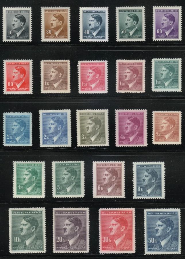 GO02: Bộ tem đầy đủ các mệnh giá hình Hít Le từ năm 1942 đến năm 1945. Giá 300.000₫ (kèm phơi bảo quản)
