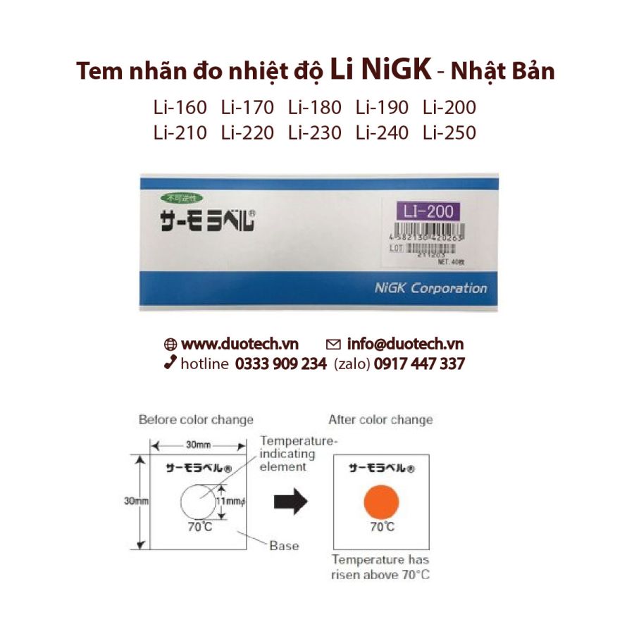 Đặc Điểm Nổi Bật của Tem nhãn đo nhiệt độ Nigk Li-170 Li-180 Li-190 Li-200 Li-210 Li-220 Li-230 Li-240 Li-250