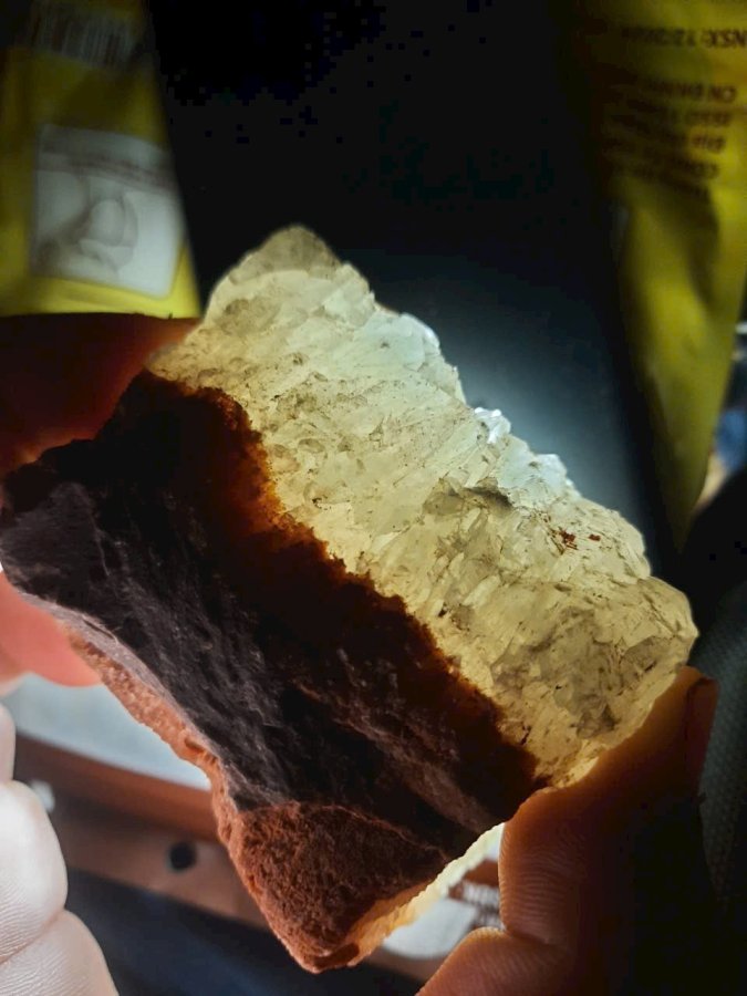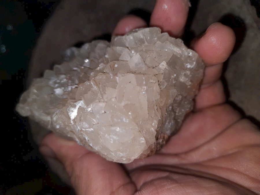 Cục cơm rang cháy thịt 3 chỉ phi hành lá có nở hoa ưu đàm. Ơchất liệu đá thạch anh trắng tinh thể nguyên khối.