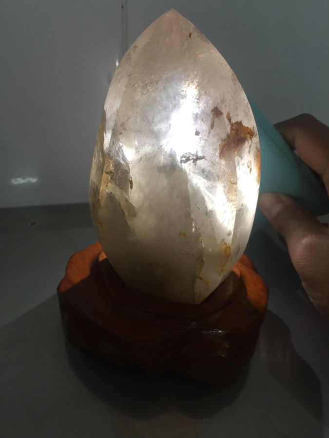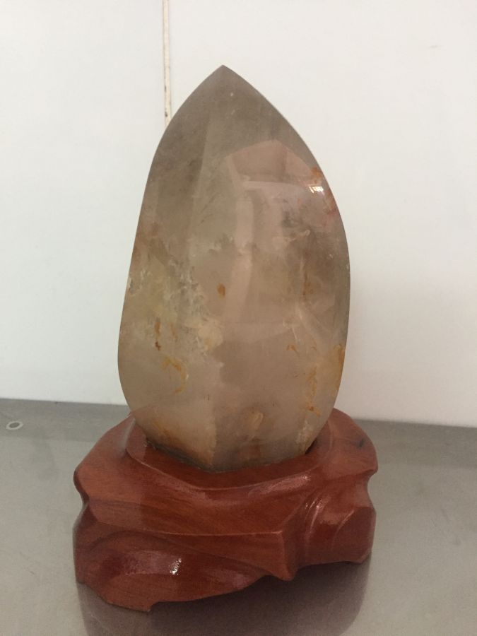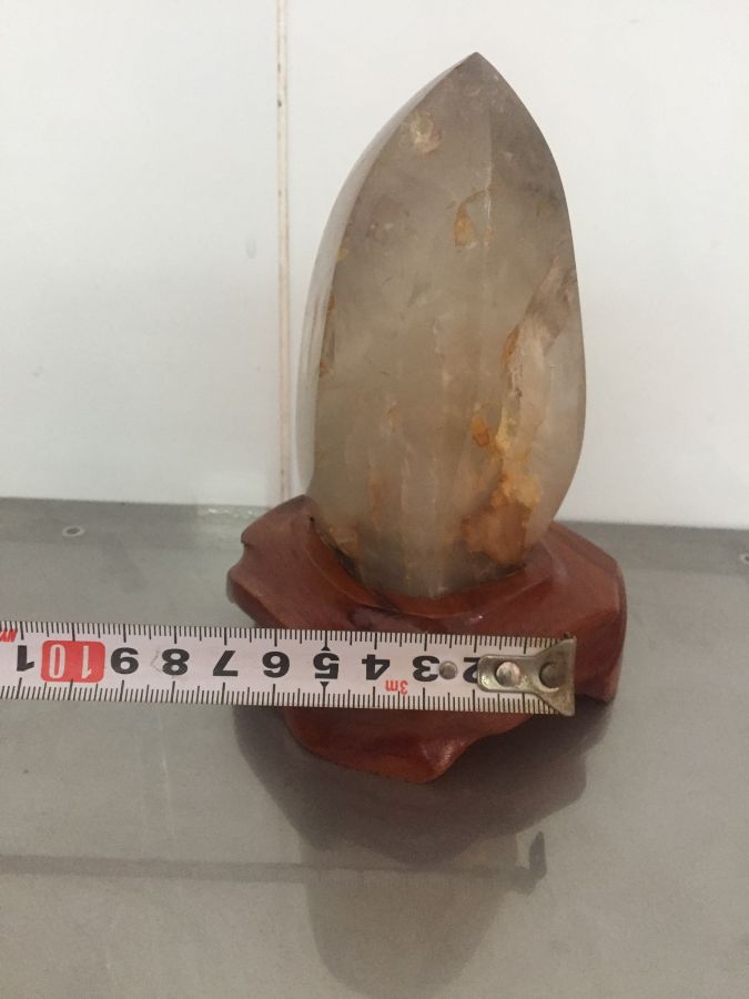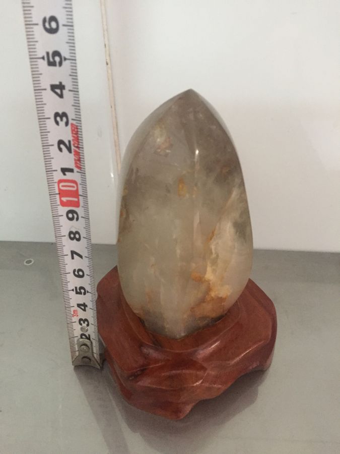 thạch a tóc nguyên khối đế gỗ kích thước như trong hình. thích hợp trưng bày sưu tầm. các bác quan tâm vui lòng liên hệ em.