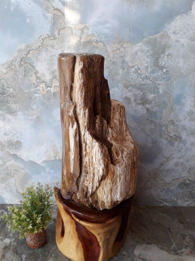 Mã số T 219. Gốc hóa thạch rất đẹp. Ngang 23 x sâu dày 22 x cao 56 cm. Trọng lượng viên gỗ hóa thạch 18 kg. Trọng lượng cả đôn 22,5 kg. Duyên dáng và giá trị xứng đáng với sự lựa chọn của anh chị.