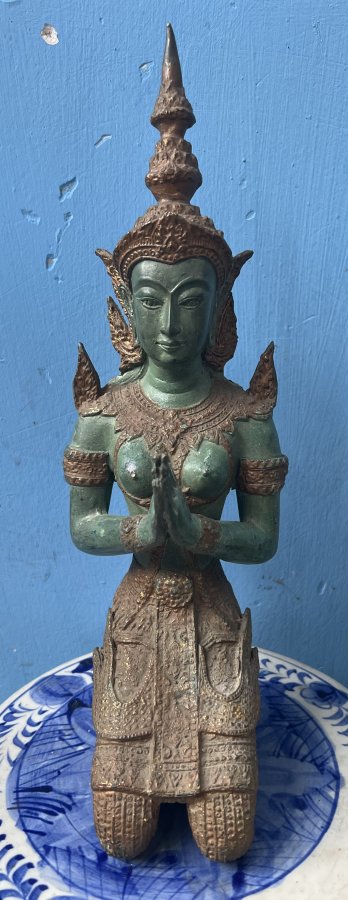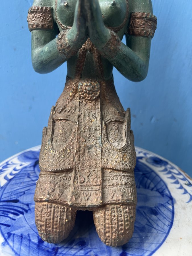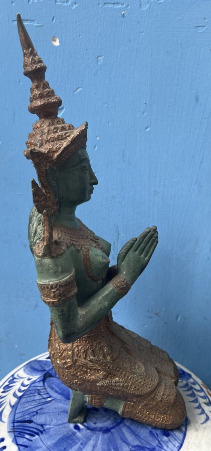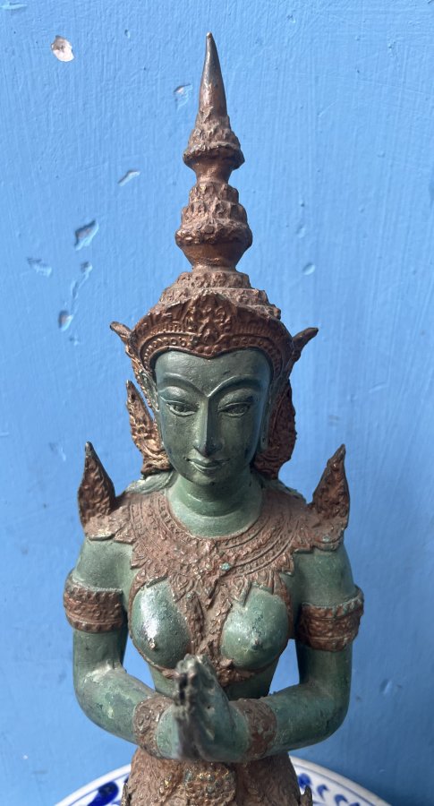 Thần Hộ Mệnh văn hóa Khmer Chất liệu đồng mạ vàng cổ Cao 33cm