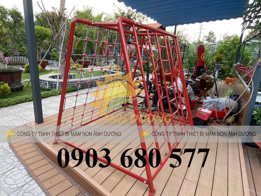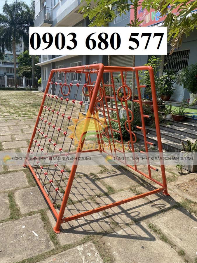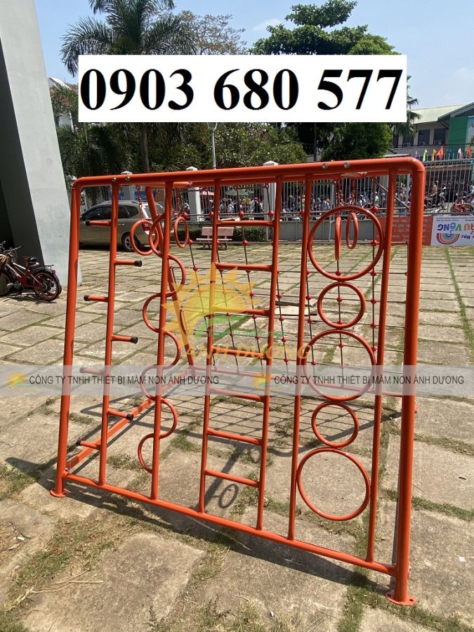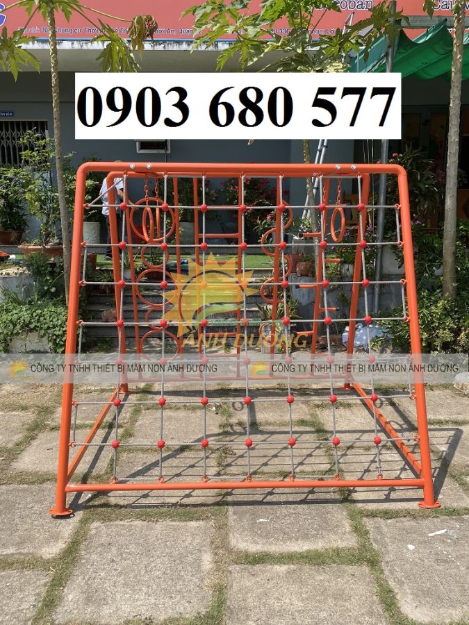 - Chất liệu của thang leo vận động: Khung sắt sơn tĩnh điện, dây leo, đu tay.