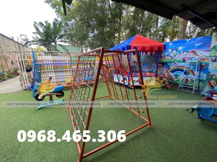 Chất liệu: khung sắt sơn tĩnh điện an toàn khi sử dụng, dây thừng leo trèo bền chắc.