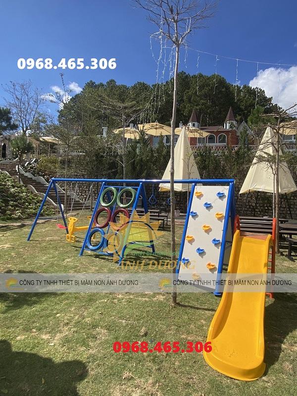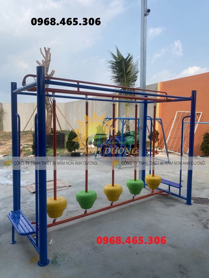 Khi đặt trong những khu vui chơi ngoài trời, thang leo mầm non kết hợp với cầu trượt, nhà banh, xích đu,…sẽ tạo không gian vui chơi tuyệt vời cho bé. Sản phẩm rất dễ kết hợp với các loại đồ chơi ngoài trời khác làm tăng sự thích thú đối với bé.