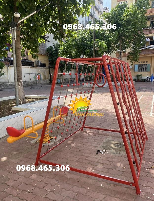 Mẫu thang leo thể chất được thiết kế giúp bé phát triển phát triển và rèn luyện thể chất cực kì tốt. Chơi với thang leo chữ A giúp bé hào hứng, thích thú khi chơi với bạn bè, thực hiện nhiều thao tác linh hoạt nhằm phát triển thể lực cho bé mối khi vận động. Sản phẩm được làm bằng lưới thừng chuyên dụng ngoài trời và khung sắt sơn tĩnh điện dày chắc chắn, góc được bo tròn an toàn cho bé.