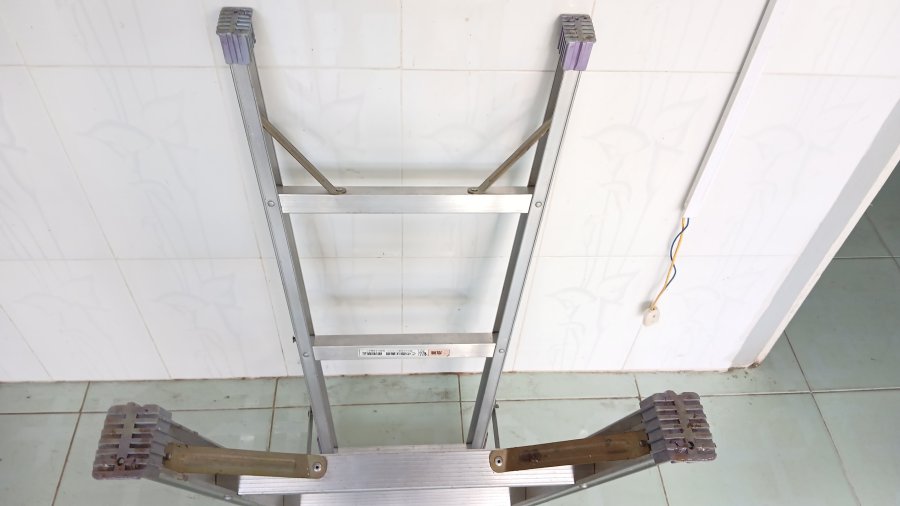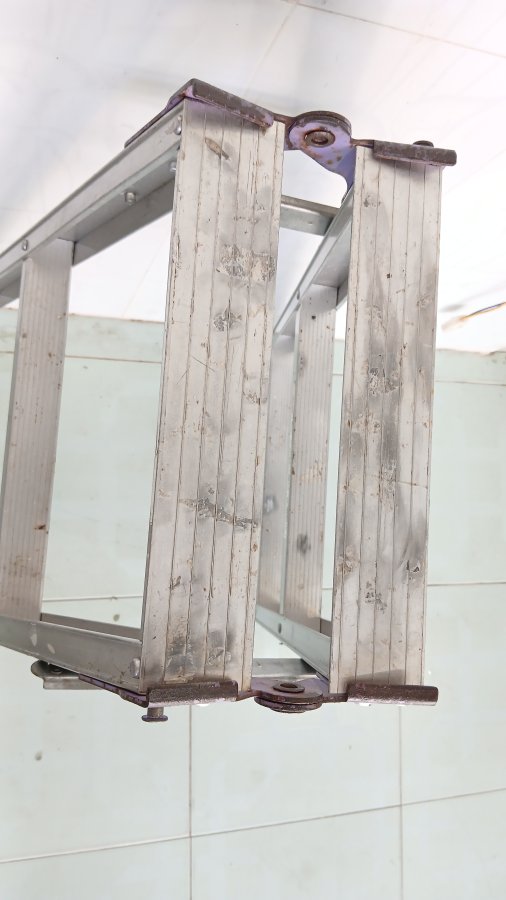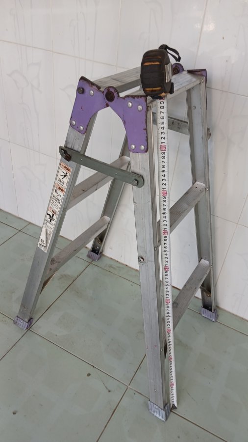 Nhôm dày liền đẹp KT: gấp chữ A cao 90cm, dũi thẳng 1,8m. Thang cứng chắc dành xài gia đình hoặc thợ điện, điện lạnh di chuyển dễ dàng.