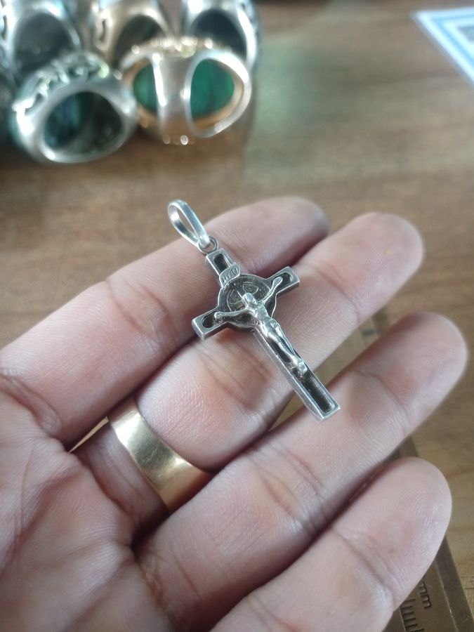 Thánh giá bạc , đúc đặc . Hàng nước ngoài . Giá 350k