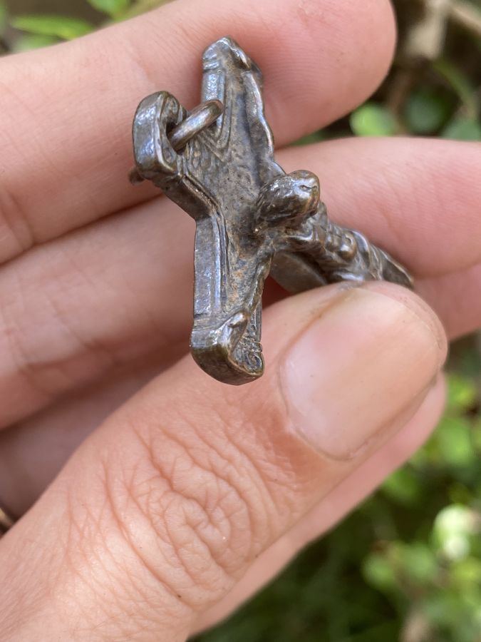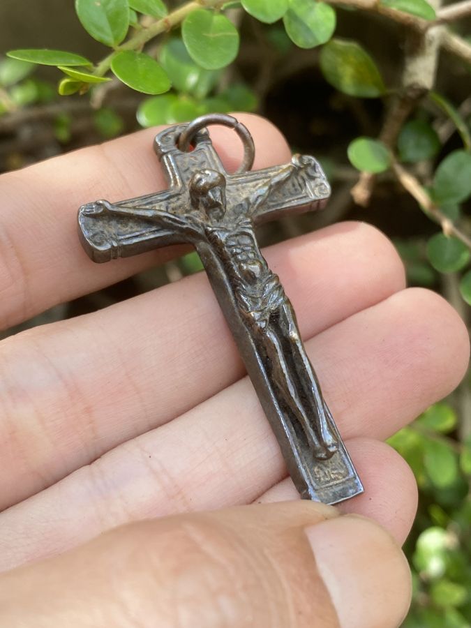 Thánh giá đồng xưa dầy nặng , xuống ten màu thời gian kt 5.8x3.6 . Gl 250k . Ck bao ship . Thanks !