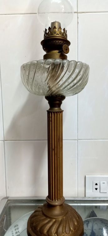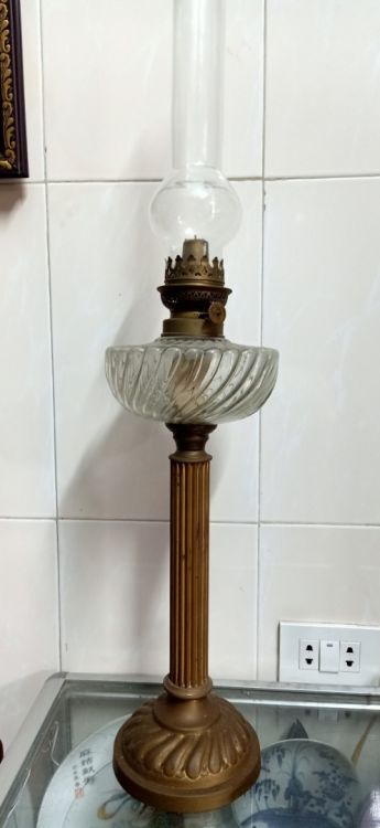 Như tiêu đề tôi thanh lí thu hồi vốn chiếc đèn dầu cổ Pháp bầu thủy tinh thân đồng siêu siêu đẹp.