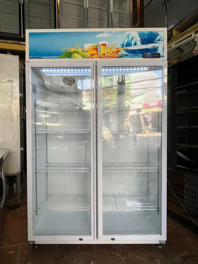 Tủ trưng bày thực phẩm dung tích 1000 lít, hàng trưng bày mới 100%, hoạt động êm – tiết kiệm điện – làm lạnh nhanh.